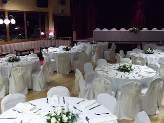 Nothing to big, just some nice roses to compliment her dress and some table centres to make the room look nice.  Unfortunately, we could not get a picture of the final room as they had their civil ceremony in the same room... but you can get an idea for the bridal designs..