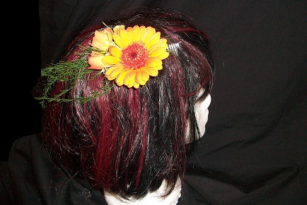 This bride wanted a wilder look in a shower bouquet so we used ivy and grasses to give that feel. We then made some complimentary bridesmaids bouquets. A matching combslide really finished off the look…