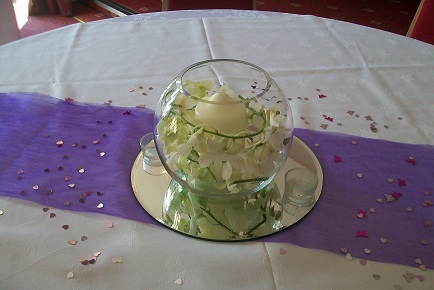 Rebecca chose a "Dendrobian Whirl" for her centrepieces.