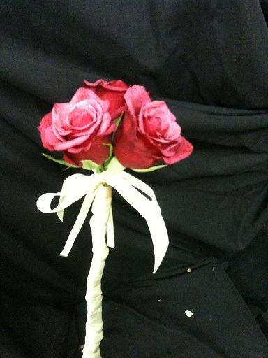 We decided as always that the bridesmaids bouquet should compliment the bouquet but not be totally like it. We used similar flowers but in slightly different colours. The cerise rose we chosen was a great colour.