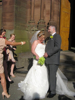 Anyway, back to the wedding. Lisa asked if we would do her flowers, she chose her favourite colour, green, always Jade Green at school, and I remembered!! I probably wouldn't know even my husband's favourite colour but I remembered Lisa's.