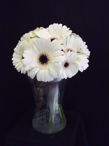 Anyway, onto the flowers.  Anna wanted a shower bouquet that incorporated Gerberas.  We decided between us that we should put in some other varieties also and we settled on White Gerbera with a dark centre, Lisianthus, Freesia and Akito Roses.
