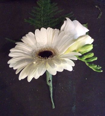 And, we mustn't forget the groom.  He wore a white Gerbera with Lisianthus and Freesia.