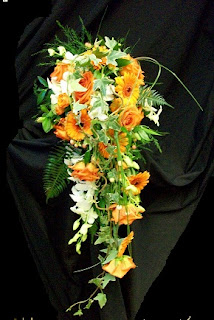 A Shower bouquet with Orange Gerbera, Orange Roses and Dendrobian Orchids.