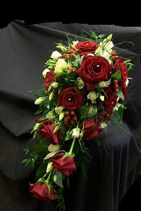 Matching handtied bouquets for the bridesmaids..... Grand Prix Roses with Hypericum Berries and a mixture of foliage.