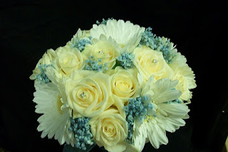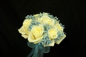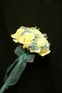 Hand Tied Bouquet of Roses, Gerbera and Gypsophelia.