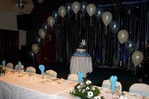 Susan and Ray had their wedding in December and wanted that wonderland feeling about it. She chose a light blue as an accent colour and told me she liked gypsophelia. Check out the decor in the Village Social Club in Widnes. We did all of the designs including the table plan for this wedding.