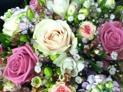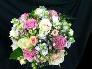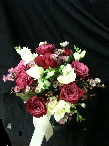 We decided as always that the bridesmaids bouquet should compliment the bouquet but not be totally like it. We used similar flowers but in slightly different colours. The cerise rose we chosen was a great colour.